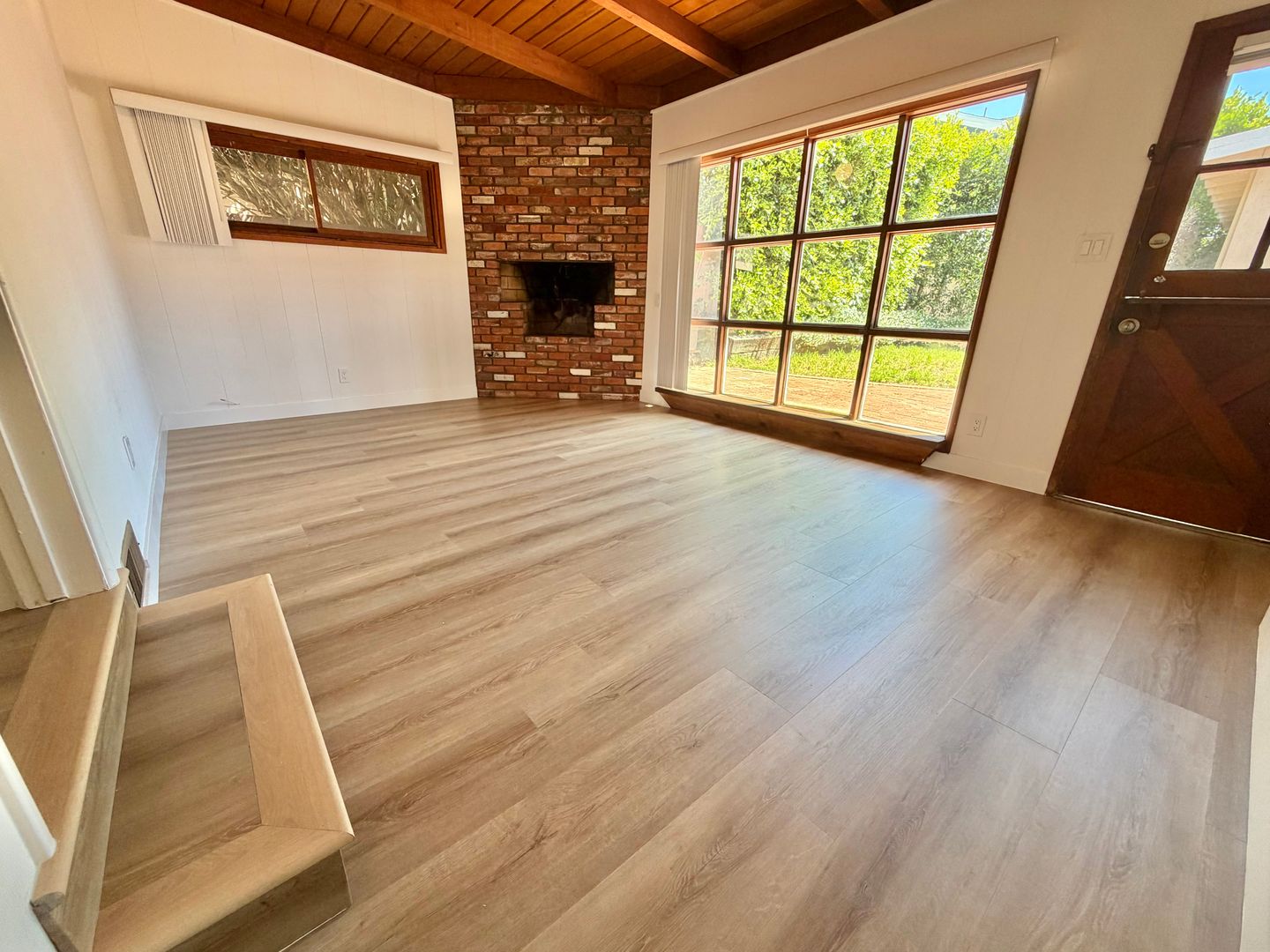 Recently refreshed with brand-new vinyl plank flooring throughout and fresh interior paint, this home offers a clean modern feel with generous living space throughout. A standout feature is the large rear den with its own bathroom and fireplace—ideal as a second living area, guest space, home office, or bonus room.